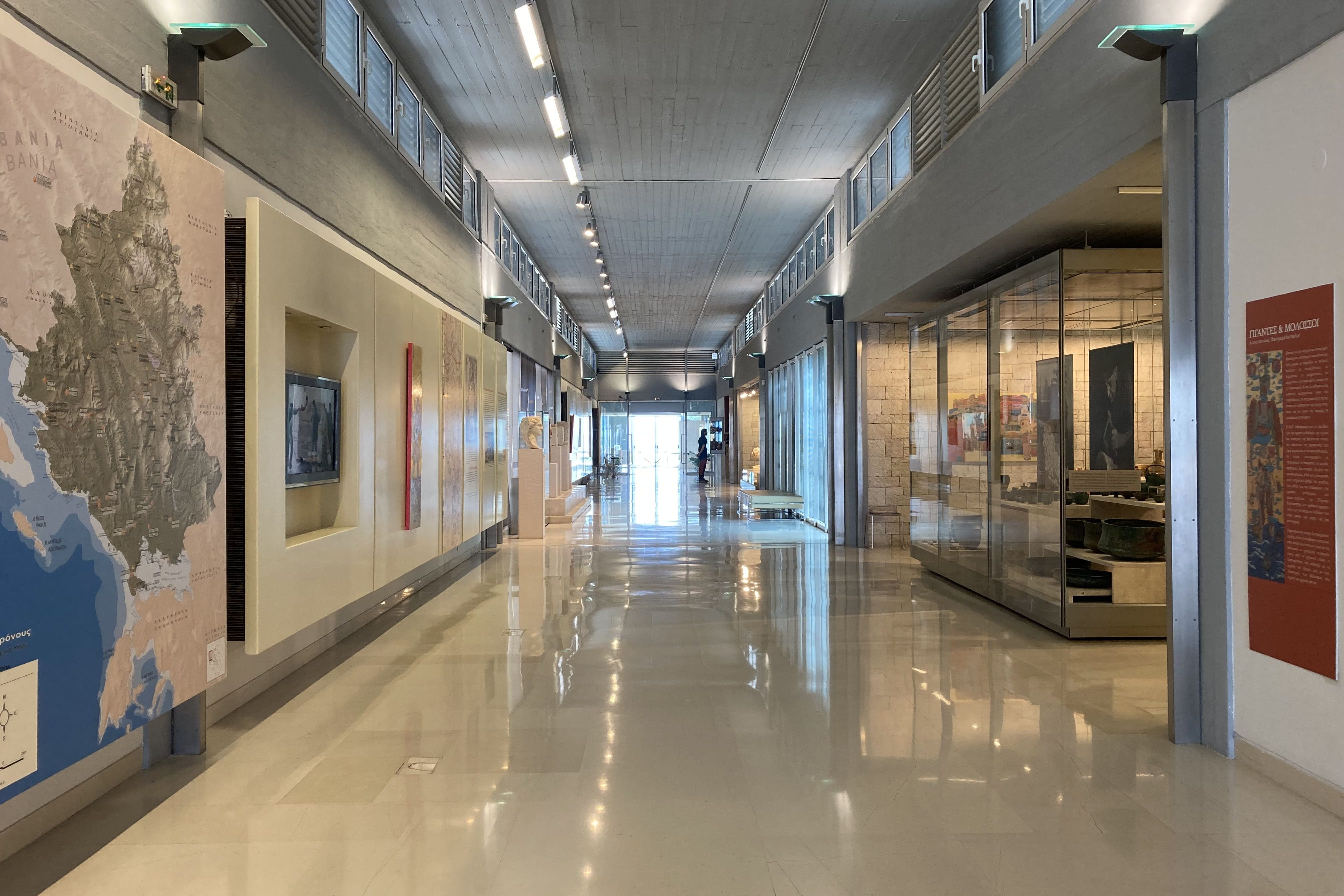Das Archäologische Museum von Ioannina ist in einem moderneren Gebäude etwas außerhalb der Altstadt untergebracht. Nach Betreten des Museums wird man von einem Zeitstrahl und einer Karte mit den wichtigsten Orten in der Region Epirus empfangen und von den prähistorischen Stücken ausgehend chronologisch durch die Geschichte des antiken Epirus geleitet. Die Exponate werden zum Teil in ihren Fundkontexten, zum Teil aber auch nach thematischen Gruppen (Münzen, Grabmarker, Keramik, Waffen) präsentiert. Etwas abgesondert sind die Funde aus dem nahegelegenen Orakelheiligtum von Dodona ausgestellt, darunter zahlreiche Bronzetäfelchen mit Bitten und Fragen an das Orakel sowie der kleine Bronzeadler, der auch das Logo der Universität von Ioannina schmückt. Im hinteren Teil des Museums befindet sich eine Fläche für Sonderausstellungen – die bei meinem Besuch allerdings leider auf Griechisch war… Das Museum hat mir ausgesprochen gut gefallen. Nicht nur wegen den wirklich interessanten Objekten, sondern auch aufgrund der Präsentation und Ausstellungskonzeption.